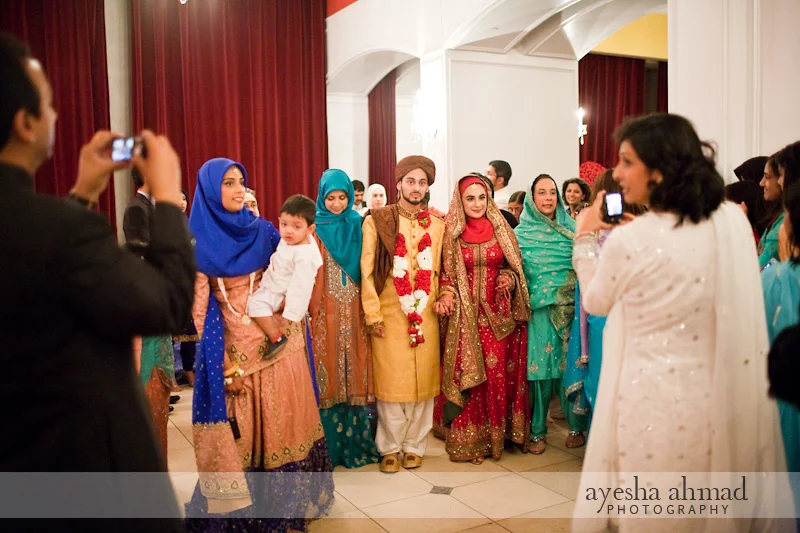 i only had a short hour with the ameen family the first time i met them, for portraits at mccrillis gardens in bethesda last month. but by the time i met with mahvish about a week before her wedding, i already felt completely welcomed by all of them... i mean, they even made me strawberry pancakes! all eight of the ameens - parents, three boys and three girls, mashallah - were a joy to see on the day of mahvish's wedding. so much love and laughter and happiness! becoming a part of it reminded me strongly of exactly why i love this job so much: the people i meet.mahvish and omar had already exchanged their vows some time ago, so this event was mainly the reception and rukhsathi. it was held at the beautiful foxchase manor in manassas, virginia, and as many muslim weddings are, gender-segregated, so as to allow the women the freedom to dress up and let their hair down away from men they would normally keep covered before (it's how i did my own wedding!). because of that, i'm of course not sharing any images of mahvish without her headscarf, nor did i take any pictures of the female guests before they covered up when the male family members came into the room for pictures. but i hope you will enjoy what i have shared here! a couple of rituals that might need explanation: the bride's family demands money before the groom can enter the hall to see his bride, and the groom drinks from a cup by the hand of his new mother-in-law. the rukhsathi, or the bride's leavetaking from her family, is generally a very emotional business - bismah and sehrish, the bride's younger sisters, almost had ME crying at the end! i owe those two a special thanks for taking such good care of me at the wedding - and for keeping me smiling all the time! jazakallahu khairan, and mahvish and omar, may God bless your marriage and your new journey together...
